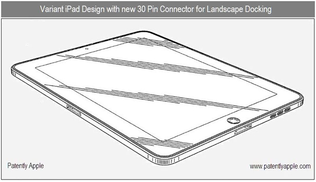 The new designs, which are unconfirmed at present, describe two supposedly new features; the first is the addition of a second dock connector on the side of the iPad to allow for landscape as well as portrait docking, while the second illustrates a feature the site is calling a “smart bezel”.