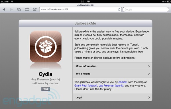 We just mashed our refresh button about a million times to get the screenshot you see above, but it was worth it. JailbreakMe 3.0 with support for the iPad 2 is finally live, and we’re already getting word from tipsters who claim to have successfully jailbroken their iPad 2s running iOS 4.3.3, as evidenced by the pseudo-blurry jailbroken Verizon model below. Thankfully, all of this suggests we’re not dealing with the dodgy release that was leaked previously, but let us know in the comments how it’s working for you this time around and hit the break for another screenshot.