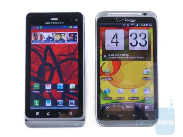 Rightfully so, the DROID 3’s display exhibits more detail thanks partly to its 4” qHD (540 x 960) display, which results in higher pixel density than the ThunderBolt’s 4.3” WVGA (480 x 800) Super LCD panel. Nevertheless, we’re accepting of their sharp details that allow fine text to be more than visible to the eye. However, we prefer the ThunderBolt’s color production since it’s able to pump out the more vibrant colors tones between the two. Just by a smidgen more, it’s evident that the DROID 3’s overall brightness output is stronger – though, we’re still finding ourselves shielding both devices outdoors with the sun around.