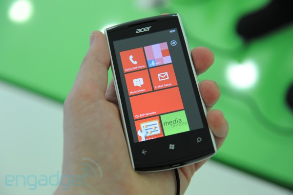 Hey, it’s our old pal, the Acer W4. We’ve heard tell of the device and seen our share of mockups, and this week at IFA, we actually got to play with the thing. The 3.6-inch handset is fairly compact, and pretty slick looking, with its black front and curved white backing. It’s not particularly exciting on the spec side, with its 1GHz Qualcomm processor. Nope, what’s most exciting here is the inclusion of Mango, which should look rather familiar to Windows Phone 7 owners, while adding some welcomed updates to the mix.