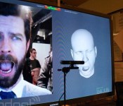 The main method of interacting is by tilting your head, opening your mouth and raising your eyebrows, but Max added some depth by turning a Leap Motion sensor into a controller for a software synthesizer. So samples and beats are all above the neck, but you can wave your hands through the air to play a lovely lead melody. Really, the whole thing is pretty self-explanatory and quite fun, as you can see in the video after the break.
