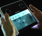 When we last saw Grippity, it wasn’t much more than a pretty media center keyboard. Well, it just grew up — its creators have revived the concept as a full-fledged, crowdfunded Android tablet. The new design still centers on a transparent, dual-sided touch surface, but there’s now more to do than type. The PS Vita-style back control lets users tap interface elements without obscuring the screen, and it opens the door to more complex multi-touch gestures. The infrared remote control and thumbpads have also returned from Grippity’s previous incarnation. If you’re intrigued, you can pledge $235 ($159 for a few early birds) to Grippity’s Kickstarter campaign to reserve a tablet for yourself; provided the team reaches its funding goal, you should have the device in your hands by October.