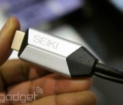 Known for suddenly coming on the scene last year with some of the cheapest Ultra HD televisions around, Seiki is getting into the accessories game with its new U-Vision HDMI cable. The $40 HDMI cable packs Technicolor 4K-certified video processing that it claims promises the best edge restoration, noise reduction and other tweaks available, all performed by the USB-powered Marseille Networks VTV-1222 chip within. While we usually prefer that our signal pass to the TV unaltered, so far Seiki’s UHD TVs haven’t proven to pack the most sophisticated scalers within. Also helping its case are industry darlings like the Darbeevision Darblet that many are using to improve the quality of their HD video on passthrough. We saw the cable in action and while the demo seemed clean, the demo reel didn’t give us much of an opportunity to compare what it was actually doing. The cable will go on sale sometime in the first quarter of this year, and arrive as an adapter in Q2.