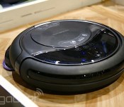 It’s always nice to find out that a device is more than just a press render. We caught wind of this cool combo vacuum/mop several hours ago and lo and behold, here it is in the robotic flesh. Moneual was showing off its RYDIS H68 at CES Unveiled by mopping away magic marker statements off a linoleum floor with help from spilled wine (what real-world scenario might have led to that combination of factors, it’s hard to say). Granted, it was a bit loud on the floor, but what struck us immediately about the H68 was just how quiet it was. It also did a pretty admirable job cleaning up the strange mess.