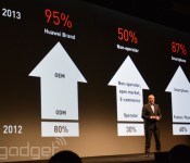 At Huawei’s CES press conference, executive VP Colin Giles reminisced on 2013, when the company truly embarked on moving from an ODM to a consumer-facing OEM. By the end of the year, 95% of all handsets left its factories with the Huawei branding attached, and in Q4 2013, smartphone shipments topped 17.5 million. In the previous quarter, the Chinese phone-crafter jumped into the top three manufacturers worldwide, according to various analysts. Despite all the company’s success and rapid growth, there’s no intention to slow down — Giles wrapped things up by setting Huawei’s sales targets for 2014, and no less than 80 million devices will do.