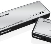 IOGEAR may’ve departed from the all-black styling we’re used to this year, but it hasn’t been able to dream up anything sexier than another utilitarian title for its latest matrix switcher. The “Long Range Wireless 5×2 HD Matrix Pro” does all the same things IOGEAR’s existing switcher announced at CES 2013 can: wirelessly beam uncompressed 1080p video and audio from any of five digital or analog sources to a receiver plugged into another TV. What you get with the “Pro” version, however, is twice the range (up to 200 ft), and way more importantly, the ability to stream to up to four different receivers instead of just one. They can each pull video from any of the input sources, too, so every daughter box can hit up the main unit up for different content. There is a mark-up for that extra functionality, though — the Matrix Pro will retail for around $700 when it launches later this year.