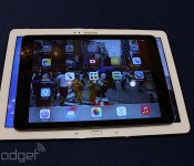 Engadget got a hands on with the 12.1-inch Galaxy NotePro, noting that it “simply isn’t designed for optimal portability” and that it is awkward to hold for long periods of time. Weighing in at 1.66 lbs with a 2560×1600 pixel display at 247 ppi, the device is significantly larger than the iPad Air.