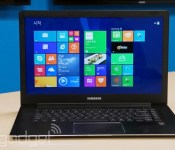 For now, at least, the screen is a bit brighter (300 nits vs. 250 in last year’s model) and you also get a regular HDMI port this time, as opposed to a micro-sized one. As you can imagine, the addition of the touchscreen, plus that slightly larger footprint, means the ATIV Book 9 is a good deal heavier — four pounds and 0.63 inch thick, versus 3.5 pounds/0.58 inch on last year’s model. The battery size is the same as ever, but thanks to Intel’s newfangled Haswell processors, runtime is now rated at 14 hours, up from 10. Samsung hasn’t revealed pricing yet, but we do know there will be at least two configurations: a Core i5 model with a 128GB SSD, and a Core i7 version with 256GB of storage.