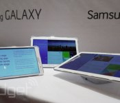 The whole range is less than 8mm thick, which (again) is just like the 2014 edition Note 10.1 — in fact, the 10.1-inch middle model is all but identical, aside from the lack of an S Pen and a drop down to two gigs of RAM. The Galaxy Tab Pro (12.2), however, seems like a harder sell. It’s just big. It’s not thick or unattractive, just big. However, it’s only this Galaxy Tab Pro that comes with the same $700 bounty of built-in software and services found on the Galaxy Note Pro. We’ve added the full breakdown below, but it includes 50GB of Dropbox storage as well as Bloomberg Businessweek and NY Times subscriptions. All three tablets are set to launch later this quarter.