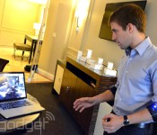 The idea of MYO traces back to the co-founders’ university days, where they explored various wearable technologies while working on a navigation aid for the blind. Lake said since brain control isn’t quite there yet, his team found muscle sensing to be the next best thing. From what we saw and tried today, Thalmic Labs seems to be on the right track: We watched co-founder Aaron Grant play Call Of Duty: Ghosts using just a pair of MYOs, and he was able to make his avatar run, crouch, jump, fire weapon and reload. Lake also gave a demo on music playback control and slideshow presentation on an iPad, both of which worked just fine. But it doesn’t stop there; the CEO also sees opportunity in industrial robotics, space application and even gesture-based authentication.