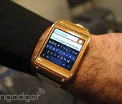 Fleksy has already shown that you could use its intuitive touch keyboard on a smartwatch with the Omate TrueSmart, so it only makes sense that someone saw fit to put it on Samsung’s Galaxy Gear. By default, the only way to enter text into the Gear is through voice dictation, which might not be your thing, especially in a crowded environment. As it turns out however, you can choose to sideload software keyboards like Fleksy, which is available through the regular Google Play store, into the Gear. Fleksy COO Ioannis Verdelis found out about this a few weeks ago from the XDA Developer forums, so he installed Fleksy on his Gear and brought it here to CES for us to see. From a brief hands-on, it seems very similar to the version we used on the TrueSmart. Simply tap in your desired words as best you can, and the tiny predictive keyboard will turn your mangled letters into coherent sentences. We took a brief video of it in action, which you can check out below.