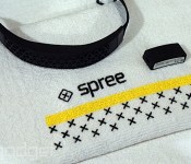 We’ve seen plenty of fitness watches, armbands and pedometers, but it’s a rare moment when we see a pedometer that sits on your forehead. Spree believes that it’s the top of your noggin that offers the most accurate physiological data, and that was enough for us to give the hardware a quick look. The device itself is a small, square, rubber brick with an optical sensor covering one of the sides. Naturally, that side has to be pressed up against your skin in order to monitor your heart rate and body temperature, while an accelerometer records your moment. In order to get the Spree into its intended position, there’s a rubber headband, which doubles as a sweatband, so, no matter how frantic your nodding, you won’t be left wiping your eyes in sticky frustration.