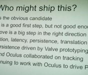 Even so, there’s still a lot of room to grow: headsets still need to shed their tethers, improve optics and solve multiple head and eye tracking issues. There are also content hurdles to overcome. According to Oculus founder Palmer Luckey (also taking the stage at Steam Dev Days), developers should be focusing on creating experiences tailored to VR. “Stop thinking about porting existing games,” read one of his slides. We’d have to agree: EVE’s Valkyrie demo is one of the most compelling VR experiences one can have, and it’s built specifically for the Rift. Despite the issues facing the budding technology, Valve seems confident that it will flourish, and pledges to continue working with Oculus to drive the VR revolution onward. Sounds mighty fine to us.