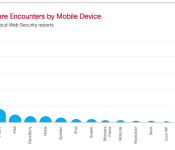 Not all mobile malware is designed to target specific devices, however. Many encounters involve phishing, likejacking, or other social engineering ruses, or forcible redirects to websites other than expected. An analysis of user agents by Cisco TRAC/SIO reveals that Android users, at 71 percent, have the highest encounter rates with all forms of web-delivered malware, followed by Apple iPhone users with 14 percent of all web malware encounters.