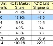 Apple posted record shipment volume during 4Q13, driven primarily by the addition of multiple countries offering the iPhone 5S and 5C, and sustained demand from its initial markets that saw these models launch at the end of 3Q13. Still, Apple had the lowest year-on-year increase of all the leading vendors. Now that Apple has finally arrived at China Mobile, it remains to be seen how much Apple will close the gap against Samsung in 2014.