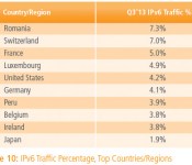 The advanced IPv6 standard reached the internet well over a year ago. But who’s really using it? Mostly Europeans, if you ask Akamai. The content delivery firm is now tracking IPv6 adoption as of its latest State of the Internet report, and it found that European nations represented seven of the top ten countries using IPv6 in the third quarter of 2013. The US was more modest in embracing IPv6 with 4.2 percent of all traffic relying on the newer technology, while Asia was relatively slow on the uptake. Adoption varies widely from provider to provider, though. More than half of Google Fiber’s traffic was based around the protocol, while more established companies like Deutsche Telekom and Time Warner Cable still leaned heavily on old-fashioned IPv4.