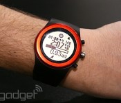 Would you like an early clue as to the dominant trend of CES 2014? It’s wearables, and, erm, more wearables. Another watch that’s hoping to earn a space on your wrist is the LifeTrak Zone R415, which grabs a little of everything from the technology buffet with the aim of being all things to all people. From the “smartwatch” table, we’ve got vibrating smartphone notifications that’ll let you know when you get calls, texts and emails. Then there’s dynamic sleep tracking which, like the Jawbone Up, will record your slumber session and wake you when you’re at your most well-rested. From the fitness tracker cart, the company has added a pedometer, calorie counter and activity tracker that’ll keep you informed of how you’re doing in hourly or weekly intervals. Rounding out the selection is an ECG, and by pushing the button on the side of the bezel, it’ll give you your heart rate. Using just a single watch cell battery, the unit should last for up to nine months between replacements and is designed to remain on your wrist, even while you’re in the pool. Holding it in our hand, we found it to be reasonably comfortable and light, and can certainly see some potential in the platform. Naturally, we’ll reserve judgment until we see it launch in Q2, but for now, it seems like it could be worth the $130 price point.