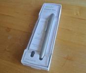 The concept of the Stanza Duo isn’t rocket science: first and foremost, it’s a stylus with a replaceable capacitive tip. Rather than wasting the rest of the internal space of the Duo, moshi has opted to put a retractable pen in the other end of the stylus. As you can see, it’s not terribly complicated, but the Duo achieves its multi-functionality with typical moshi understated flair, adopting a brushed aluminium barrel with a silver clip.