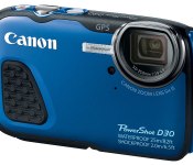 It’s a very busy CP+ for Canon. The camera maker has a handful of new models for the show, including one of the waterproof variety. The PowerShot D30, which replaces 2012′s D20, boosts the waterproof rating from 33 feet to 82 feet, making it a suitable choice for all but the deepest scuba dives. There’s a 12.1-megapixel CMOS sensor, a DIGIC 5 processor and support for 1080/30p video. The 5x 28-140mm lens isn’t as fast as we’d like for dim underwater shoots, with an f/3.9-4.8 maximum aperture, but with the ISO bumped up a bit, it should perform decently. You can frame shots on the 3-inch 461k-dot LCD, which sports a sunlight mode for use in brighter conditions. The camera is shockproof and cold-resistant as well, and while there’s no WiFi on board, it does include GPS. The PowerShot D30 is expected in stores by mid-April with a $330 MSRP.