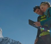 Ballinger and Harrington are shown using the iPad from base camp to summit, documenting their trip with photos and blog posts. Instead of waiting weeks to share their adventure, the pair used the iPad to provide expedition details as they happened. The iPad was also used for terrain mapping the terrain and route planning through treacherous mountain regions.