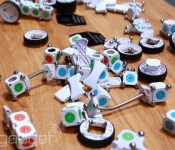 The faces of the cubes are painted green for power, blue for pass through, orange for output and brown for input. Sensors or input mechanisms such as knobs are all black. Figuring out how to assemble the blocks is pretty easy: you need a power block to start, then some form of input whose orange face connects to the brown face on an output block (eg. a motor connected to a wheel). Of course, you’re only limited by you’re imagination and the blocks in your kit. Vehicles that follow your hand movements or even card shufflers are within your reach. If you want to get really crazy, you can get an optional Bluetooth expansion module that lets you send or receive data from an iOS or Android device. The company has cooked up a couple of example apps, such as a virtual Etch-a-Sketch and a data log, and plans to open the module to developers who wish to code for their own creations.