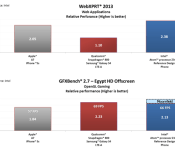 It’s now two years since we first clapped eyes on an Intel-based smartphone, and yet we’re still waiting to see something compelling. If we’re able to trust Intel’s in-house benchmarks, however, then the wait could be over. The publicity slides copied below suggest that the company’s latest dual-core Merrifield Atom smartphone processor (which we last saw at Computex 2013) can match or even beat the current top dogs of the mobile silicon world, namely Apple’s A7 and Qualcomm’s Snapdragon 800. To some degree this isn’t totally implausible: After all, Merrifield (and its newly announced quad-core big brother, Moorefield) have the benefit of the same ultra-efficient 22nm silicon that has benefitted Bay Trail tablets, alongside a cutting-edge Rogue GPU from Imagination Technologies. On the other hand, Intel is comparing Merrifield and Moorefield to rival chips that are already well into their life cycles, and that needs to be taken into account. Moreover, from our own efforts at comparing Android gaming performance across devices, we suspect that raw, benchmark-able performance isn’t everything — Intel also has to contend with a lack of optimization among current Android games and apps. The only reliable test will therefore be a real-world one, and so we’re currently digging around at MWC to find out long it’ll be before we can get hold of a new Atom-based handset that we can actually use.