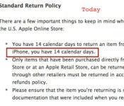 This change brings Apple’s return policy in line with U.S. carriers, which offer a 14-day return period for customers who buy an iPhone from a carrier’s website or retail store. Previously, Apple would accept returns beyond the carrier’s 14-day period, but within the company’s 30-day return window. These customers would be credited for their iPhone purchase, but they still had to pay an early termination fee and any other associated charges to the carrier. This policy often was confusing to customers who expected to return their phone without penalty.