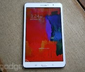 The Galaxy Tab Pro 8.4 has a 4,800mAh battery, which is a slight bump over the Tab 3′s 4,450mAh power pack. In our standard battery test where we play a video on loop with 50 percent brightness while having notifications for email, Facebook and Twitter turned on, the Tab Pro lasted for seven hours and 13 minutes. That’s substantially less than the iPad mini with Retina display and though it’s about on par with the LG G Pad 8.3, it fares much worse than Amazon’s 7-inch Kindle Fire HDX, which lasted well over 10 hours. We admittedly didn’t set the brightness as high as we should have with the 8.9-inch version of the HDX, but that being said, it did manage 15 hours in our battery test, which is more than double what the Tab Pro 8.4 is capable of.