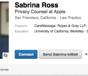 Apple has filled a position of privacy counsel with a lawyer experienced in customer privacy, data protection, electronic surveillance, information security and more. Sabrina Ross, a former associate at both Ropes & Gray and Sidley Austin, joined Apple this month according to her LinkedIn page (via AppleInsider).