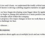 The email went on to suggest that the agency be given more freedom to experiment with ideas and that Apple needs to consider specific questions, such as company behavior, sales approaches, and product roadmaps.
