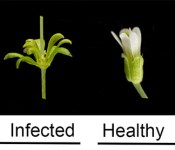 That’s not all the bacteria can do, though. In addition to changing a flower’s structure and rendering it sterile, the bacteria can also attract sap-sucking insects. Instead of dispersing pollen, these insects carry the parasite to more victims, turning more plants into green, leafy puppets.