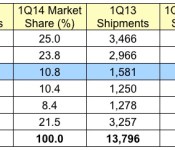 In the U.S. market, PC shipments totaled 14.1 million units in the first quarter of 2014, a 2.1 percent increase from the same period last year (see Table 2). HP maintained the No. 1 position, as it accounted for 25 percent of PC shipments in the U.S. market. Dell and Lenovo experienced the strongest growth among the top five vendors, with growth rates of 13.2 and 16.8 percent.