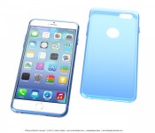 The renderings depict the iPhone 6 as a thin device with rounded corners, with the power button located along the upper right side of the device and rectangular volume controls similar to that of the fifth-generation iPod touch. The case rendered to compliment the phone also contains cutouts for each new design change, along with holes for the camera, flash, and Apple logo on the rear.