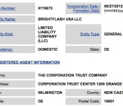 – Concealed company structure and location: Brightflash is registered in Delaware, a common location for incorporation due to the state’s business-friendly laws. According to state records, Brightflash was formed on June 27, 2012 and the company uses the Corporation Trust Center in Wilmington, Delaware as its address. That building serves as the home of hundreds of thousands of companies, streamlining the process of locating in Delaware and providing a level of anonymity for companies registering using the firm’s services.