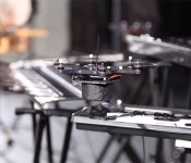 KMel’s flying robots have pretty freaky abilities, but luckily they seem more interested in show-biz than terrorizing humanity. Though they’ve already done a crude James Bond number, this time they’re rocking more instruments and playing challenging pieces like Also Sprach Zarathustra (aka the “2001: A Space Odyssey” theme). The piece de resistance is two quads playing a guitar-like string, with one tapping it and the other changing pitch. Actually, the whole thing is pretty great — be entertained and disturbed all at once by the video below.