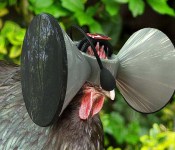 Obviously we don’t have the space or resources to allow every chicken in the country to be free range, but we’re not always entirely comfortable with the cramped filthy conditions our future meals are raised in. Thus was born this virtual environment where chickens can roam free, at least in their minds. But the project is as much about human relationships as it is about chickens. We spend our days isolated in cubicles glued to a computer screen — just how different is that from a chicken coop? Well, we’re not rolling around in our own feces, so that’s an advantage. If you’re not into feeling introspective and down right now, then just sit back and enjoy the Photoshopped image above. I mean, come on — it’s a chicken wearing a VR headset!
