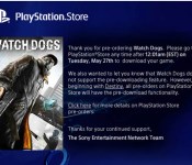 Tired of making sandwich after sandwich, idly waiting while the ol’ PlayStation 4 downloads Metal Gear Solid: Ground Zeroes? Though we’d never encourage you to stop making delicious sandwiches, we do sympathize with the situation. Thankfully for you, Sony’s adding pre-loading of all pre-ordered upcoming games to the PlayStation 4 starting this fall with Bungie’s next big game: Destiny. That means you can download the whole shebang ahead of the game’s “official” launch on September 9th, and when midnight strikes, you’re ready to go. Bizarrely, the news comes via PlayStation Network message from Ubisoft; as seen above, Watch Dogs (which launches this Tuesday) won’t have pre-loading. Sorry Charlie! Come September, however, you’re good to go.