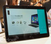 Portable can mean different things to different people, and ASUS is also severely stretching the definition of the word with its new 20-inch all-in-one PC. The built-in battery will apparently go the distance, as long as said distance takes five hours, while a fold-out handle ledge offers a way to carry it without getting finger smudges on the screen. The unit weighs in at 3.2kg, and when we gingerly picked it up to carry, we were left wishing for a handle that was a little more substantial.