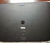 The abandoned tablet features a slim bezel and what appears to be a kevlar rear casing, similar to that found on DROID smartphones last year.