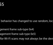 Randomized MAC addresses – iOS randomizes the MAC addresses of iOS devices when scanning for WiFi networks, which makes it more difficult for companies to track and gather location data on a customer. Each iOS device has a unique MAC address, which could previously be used for location tracking and data collection via WiFi scanning. iOS 8 will use random, locally administered MAC addresses that “may not always be the device’s real (universal) address.”