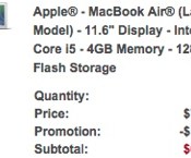 – 11.6″ MacBook Air, 4GB, 128GB SSD: $899 -> $799 -> $649