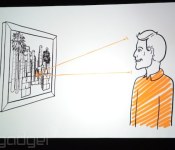 Along with standard cameras, Amazon’s Fire Phone utilizes four additional cameras for a 3D interface, called “Dynamic Perspective.” 3D images on the phone change as it is tilted and viewed from different angles, thanks to advanced eye and face tracking capabilities. Demonstrated with a mapping app, the 3D UI displayed a 3D version of the Empire State Building that could be viewed from all angles, with a tilt of the phone expanding the view.