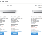 Pricing on the Mac mini dropped between €30 and €60, depending on the country and model. Most European stores are now offering the entry-level Mac Mini for €619 with the quad-core and OS X server models selling for €819 and €1019, respectively, although some euro countries such as Germany are showing slightly lower pricing of €599/€799/€999. In the UK, the entry-level Mac Mini remains the same at £499, with price drops between €30 and €50 being applied to the quad-core and server models.