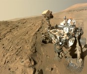 Curiosity feted its first Martian year on the red planet (687 earth days) with a stiched-up selfie while NASA reflected on the Mars rover’s triumphs and setbacks. So far, it has achieved most of its mission goals, particularly its quest for evidence that Mars could have supported life. Drilling samples revealed traces of all the elements needed for life, and it spotted a streambed that once had “vigorous” water flow. The rover also found that moisture could be drilled from its soil, and that the radiation levels were safe for humans — all important details for planned space travel. Unfortunately, due to sharper-than-expected rocks, Curiosity now has a gaping hole in its wheel, which forced the team to change its driving methods and routes. It’s not expected to have much impact on the mission, though — after grabbing samples at a site called Windjana, Curiosity’s now headed to Mount Sharp, some 2.4 miles away. With its main goals accomplished, any new science is gravy — see the video below for more.