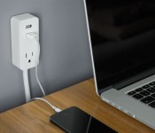 MOS Reach combines a three-prong power outlet and dual USB ports with a three-foot cable and a slim profile that is easy to mount on walls and surfaces, relocating power outlets that are inconveniently placed behind and under furniture.
