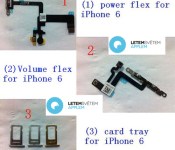 Several new photos published today by Letem svetem Applem [Google Translate] show the purported power and volume flex cables as well as three SIM card trays that hint at the color options Apple is planning for the iPhone 6. This report follows a leak from earlier this month that first showcased these two internal flex cables from the iPhone 6, although the parts shown in the two reports are not identical.