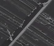 For Nick Zammuto, vinyl scratching isn’t something to be done during a DJ set, but with a craft knife. That’s because the musician likes to cut grooves into LPs and use the resulting jumps as the rhythm for his unique brand of electronica. In order to make the video for single Great Equator, Zammuto combined music with his love of microscopy, using a scanning electron microscope to examine the scratched records up close. The resulting video also looks at scratched CDs, rubber stamps and the odd extreme close up of an insect, which is natural when you’ve got access to an electron microscope. If you’re curious to see the odd mix of high-power imaging and whispering vocals, head on past the break.