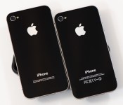 Verizon iPhone 4 without FCC label on left, iPhone 4 with FCC label on right.
