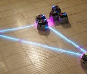 Roboticist-in-residence James McLurkin offered an advanced preview of his Robot Swarm at NYC’s Museum of Mathematics this week. The presentation detailed the background and programming concepts of these sensor- and speaker-laden bots — which have a habit of spitting out 8-bit-style tunes while they work. The digital creatures exhibit group behaviors much like ants and bees, working together to map out their surroundings and communicating with each other — and there’s a definite hierarchy to their organization. The Robot Swarm exhibit will be open to the public when it’s completed later this year and will be displayed beneath a transparent floor so you can watch the action happen from your own god-like perspective. Head on down to the gallery for a closer look at how the Robot Swarm will organize itself when the robopocalypse finally arrives.