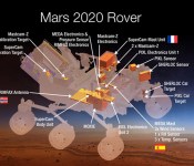 One of the scientific payloads is called Mastcam-Z, a camera with panoramic, stereoscopic and zoom abilities. Another called SuperCam can analyze the chemical and mineral composition of rocks, while the Planetary Instrument for X-ray Lithochemistry (PIXL) can determine the elemental composition of surface minerals. The third one called Scanning Habitable Environments with Raman & Luminescence for Organics and Chemicals (SHERLOC) uses UV light to detect organic compounds, while Mars Oxygen ISRU Experiment (MOXIE) will attempt to produce oxygen from Martian carbon dioxide. Then there’s the Mars Environmental Dynamics Analyzer (MEDA) that will monitor the environmental conditions on the planet, and finally, the Radar Imager for Mars’ Subsurface Exploration (RIMFAX) equipped with a ground-penetrating radar that’ll give us a glimpse of what’s beneath the planet’s surface.